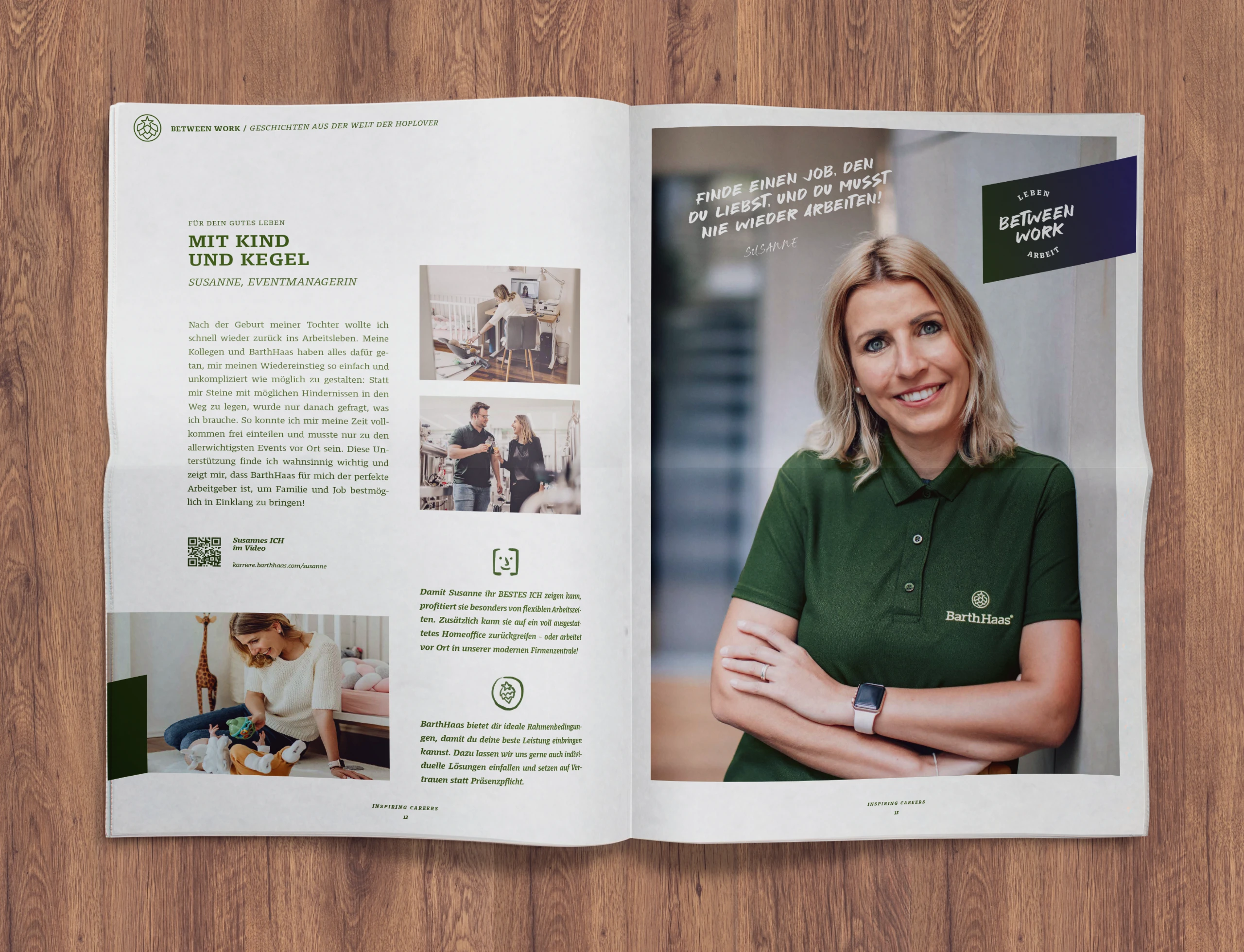 „DEIN JOB. DEIN ICH. Gestalte Deine Geschmackskarriere!“ BarthHaas setzt von Strategie bis Kommunikation auf eine durchdachte Arbeitgebermarke, die sowohl potenzielle Mitarbeiter begeistert als auch die Erwartungshaltung des Unternehmens klar kommuniziert. Im Fokus stehen die eigenen Mitarbeiter und zeigen, wie sie ihre Arbeitswelt aktiv gestalten – emotional, aktivierend und vor allem persönlich. Unterstützend bietet das Karrieremagazin einen ehrlichen Blick hinter die Kulissen und zeigt das selbstbestimmte Arbeitsumfeld von BarthHaas. Besonders wichtig: ob wechselnde Zielgruppen oder Kanäle, die Botschaft bleibt immer eindeutig: Nur gemeinsam haben wir Erfolg und entwickeln unser volles Potenzial.