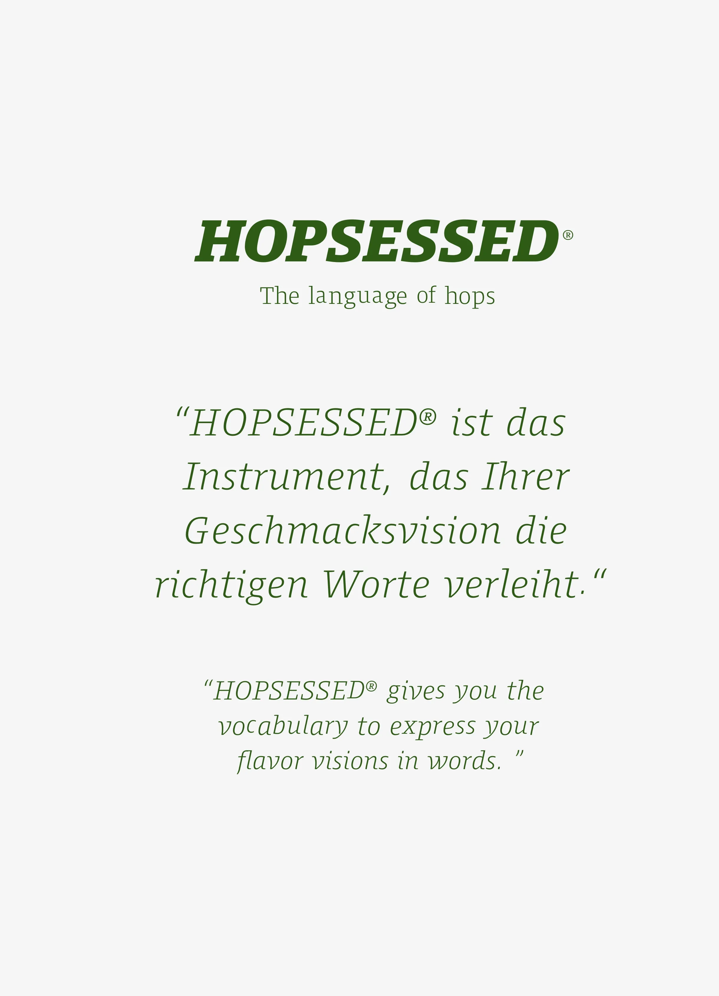 Wie lässt sich Hopfengeschmack visualisieren? BarthHaas hat für die Einordnung von Hopfenaromen der weltweit verfügbaren Hopfensorten eine eigene Sprache entwickelt: HOPSESSED®. The language of Hops. Mit den Beschreibungen der Hopfenaromen erhalten Brauer weltweit die Möglichkeit einzigartige Bierkreationen zu entwickeln und zuverlässige Hopfen-Geschmacksaussagen zu treffen.