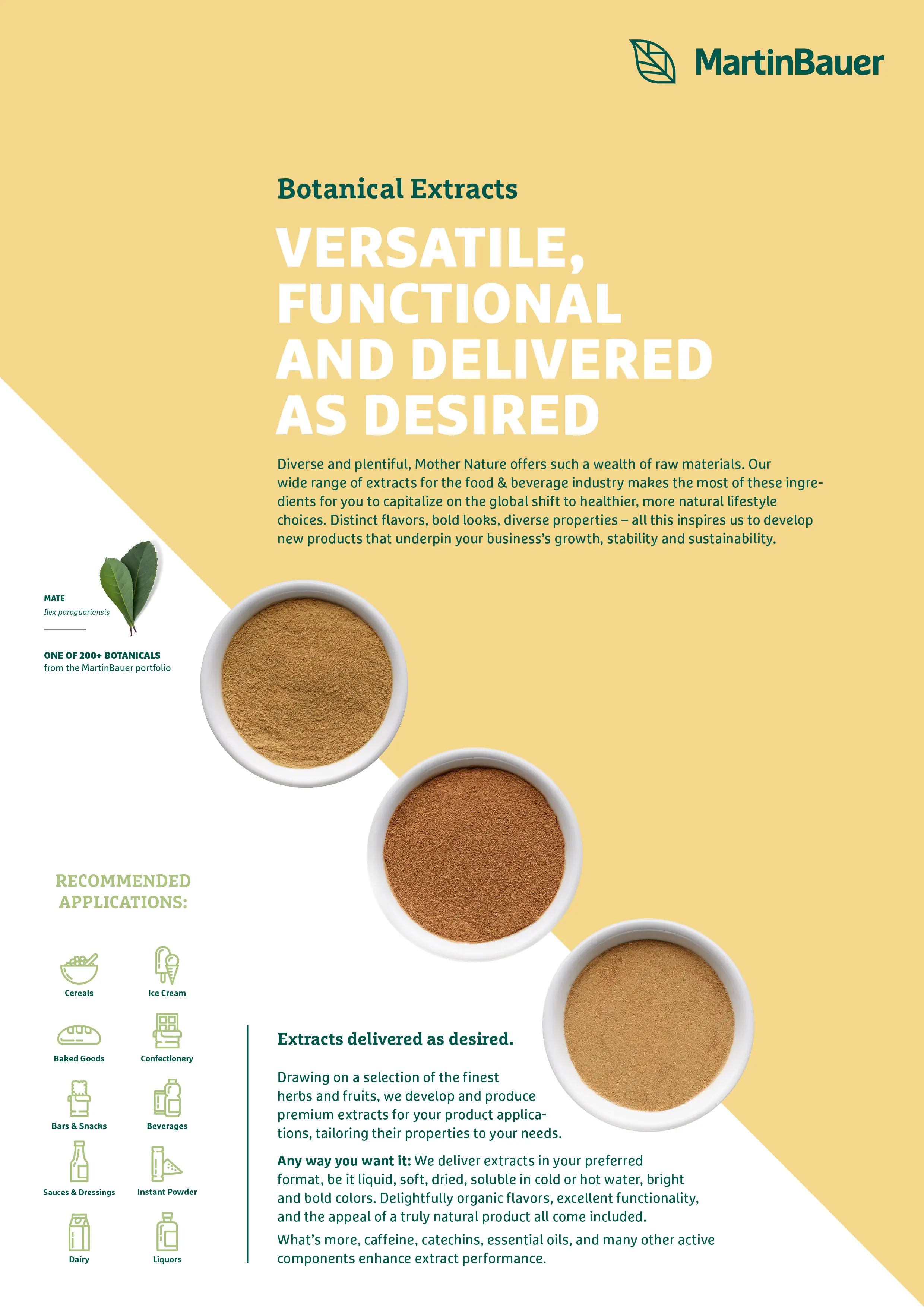 MartinBauer steht seit über 90 Jahren für botanisches Wissen, Forschung und Verantwortung im Umgang mit der Natur. Als global führender Partner für Botanicals ist das Unternehmen die erste Adresse, wenn es um pflanzliche Lösungen für die Lebensmittel-, Tee- und Pharmaindustrie geht.