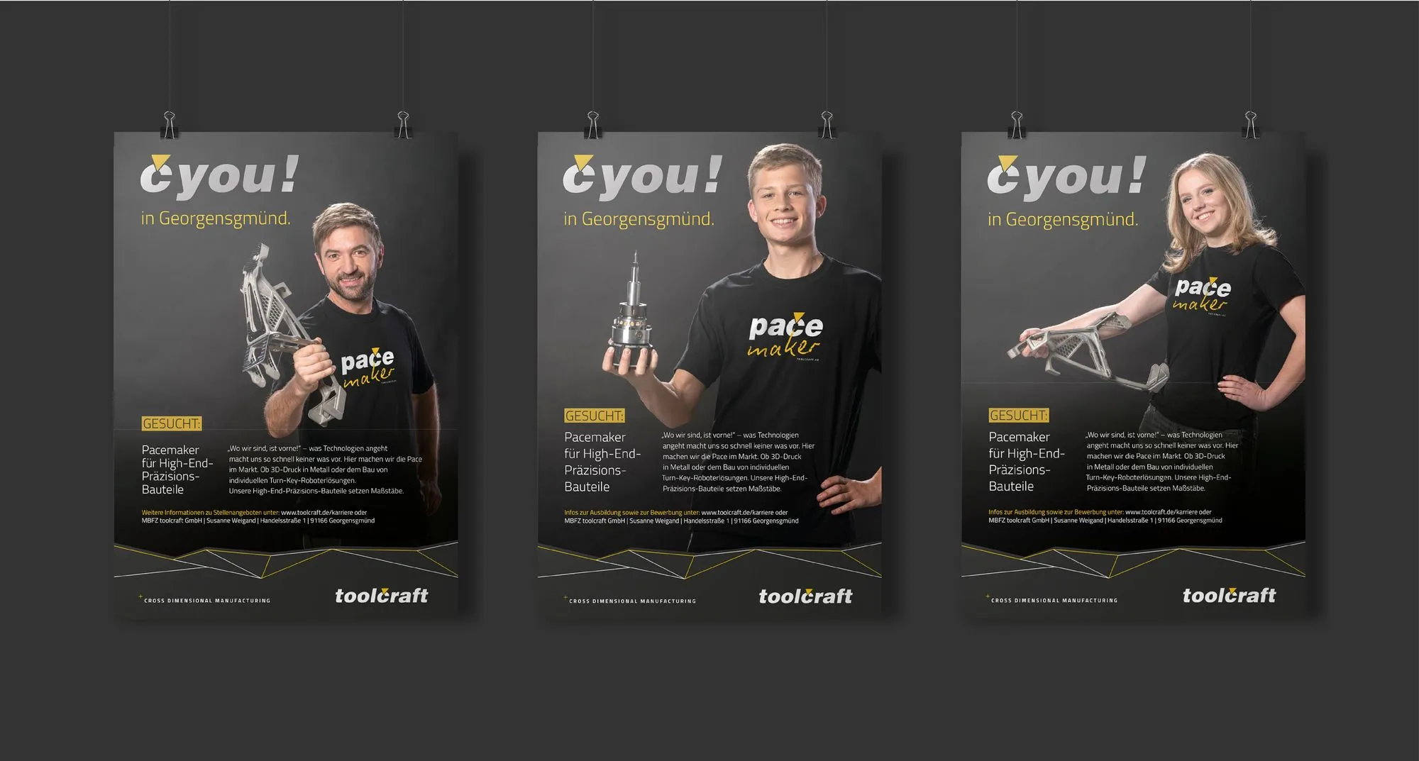 Wer kann und will, der darf. Nach diesem Grundsatz fördert toolcraft den Mut, ganz nach vorne zu gehen. Im Blickpunkt: Eine verantwortungsstarke Teamkultur, die Identifikation und Stolz erzeugt. Die Pacemaker machen hier den Unterschied. Weil ihre Story mehr transportiert als mittelständisches Unternehmen und Gratis-Kaffee. Mit einer Kampagne, die Professionals wie Azubis durch Pacemaker-Qualitäten überzeugt und Arbeitgeber- und Unternehmensbotschaft konsequent integriert.